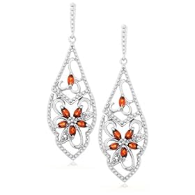 Platinum Overlay Sterling Silver Garnet w/ Diamond Accent Dangle Earrings